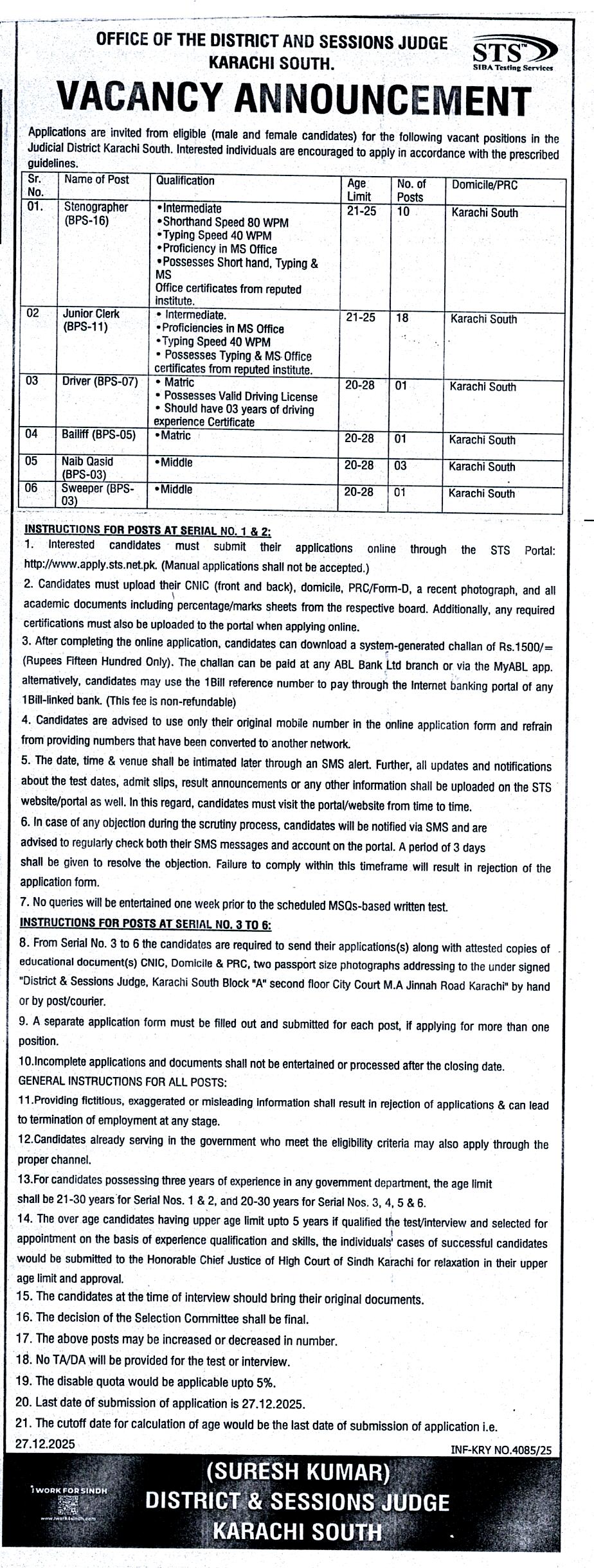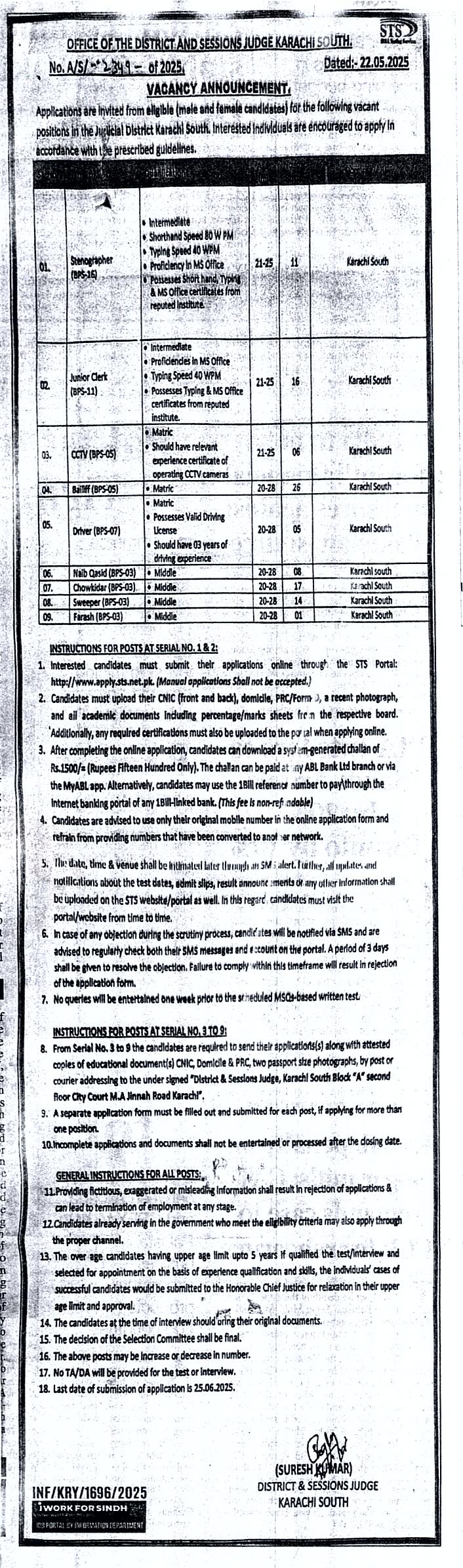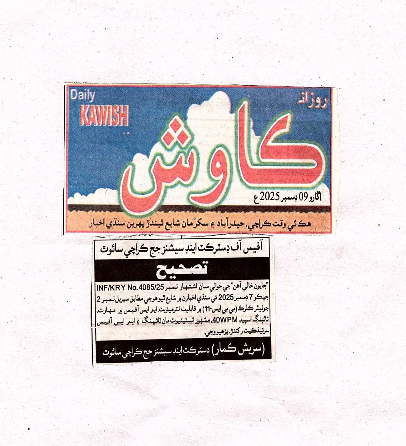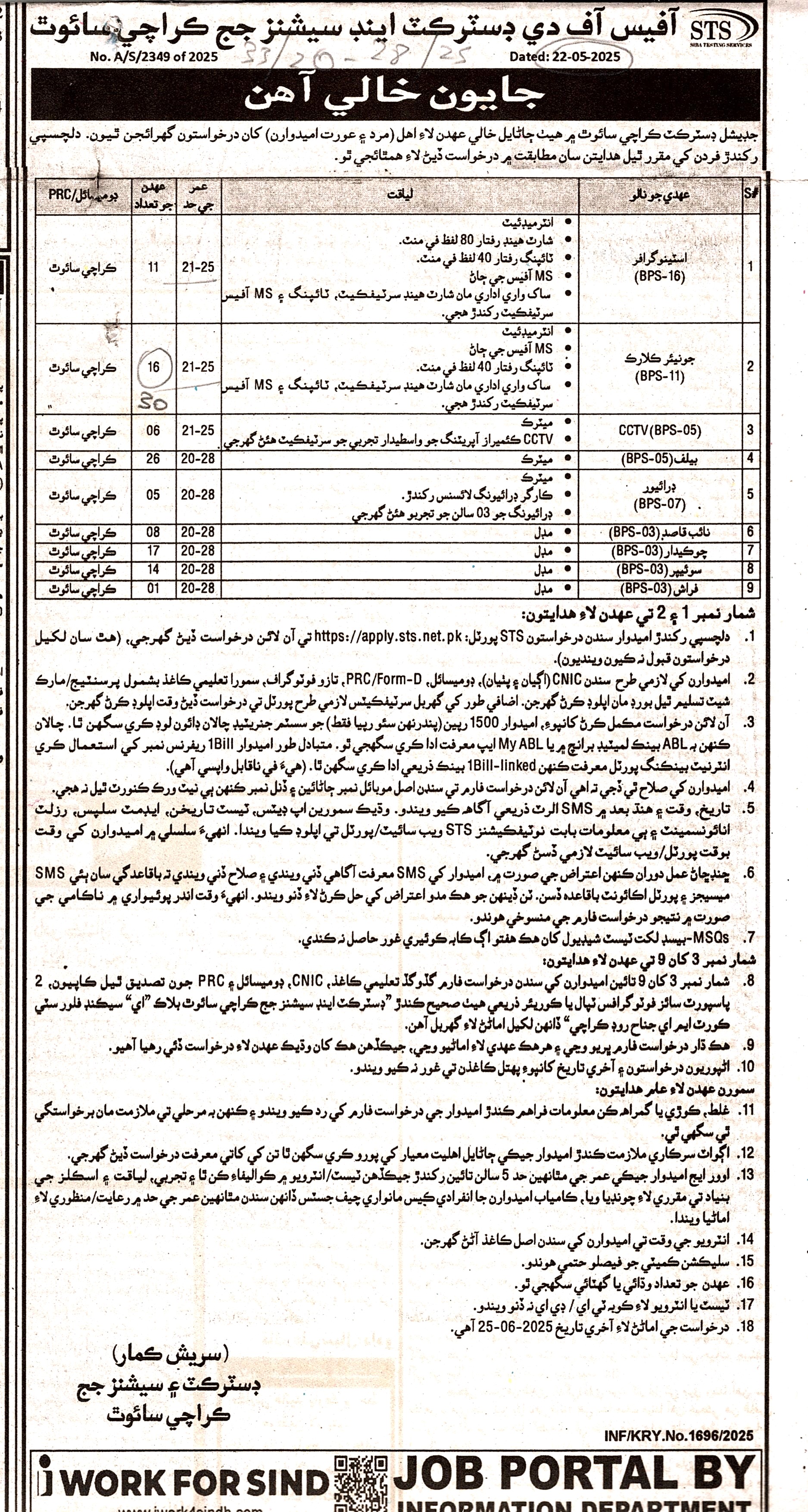 - Job Advertisement ( Sindhi ) New
